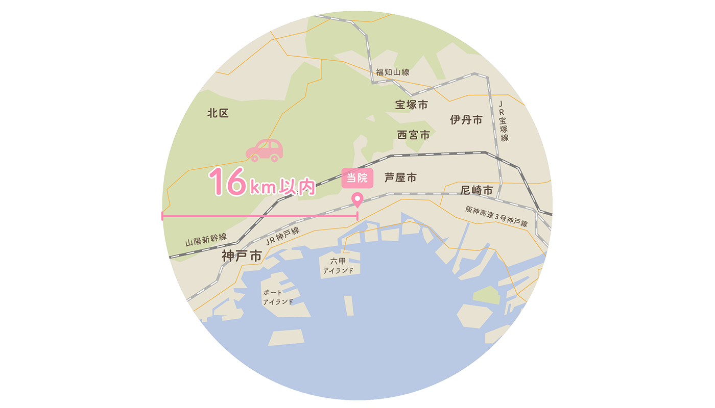 ※半径16kmを超えた場合は保険適用外(自費治療)となります。